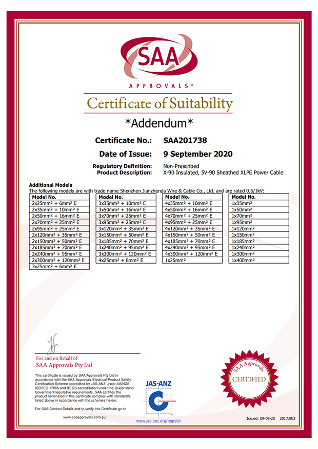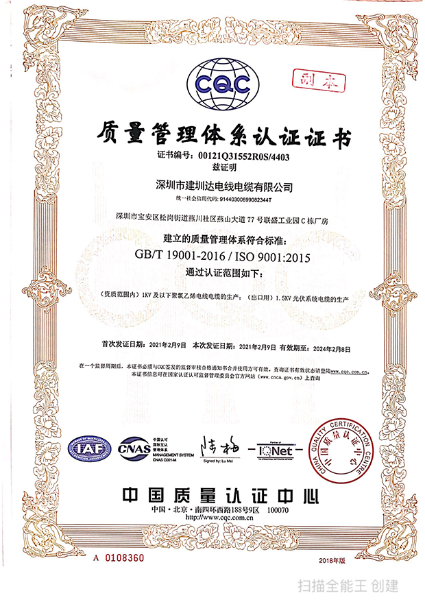 深圳建圳達(dá)電線電纜有限公司,成立于2000年,是一家電線電纜制造商,我們通過(guò)了世界各地不同市場(chǎng)的多數(shù)認(rèn)證,如:CCC、RoHS、CB、SAA、TUV、VDE、PSE、BPS、UL、CSA。我們根據(jù)定制產(chǎn)品不斷更新新的認(rèn)證。經(jīng)過(guò)數(shù)十年的發(fā)展,我們與來(lái)自世界各地的客戶建立了長(zhǎng)期的合作關(guān)系。我們?cè)?jīng)是菲律賓機(jī)場(chǎng),,柬埔寨的電力站,美國(guó)的醫(yī)院,工廠,埃塞俄比亞的水電站項(xiàng)目。我們是一家值得信賴的電線供應(yīng)商。