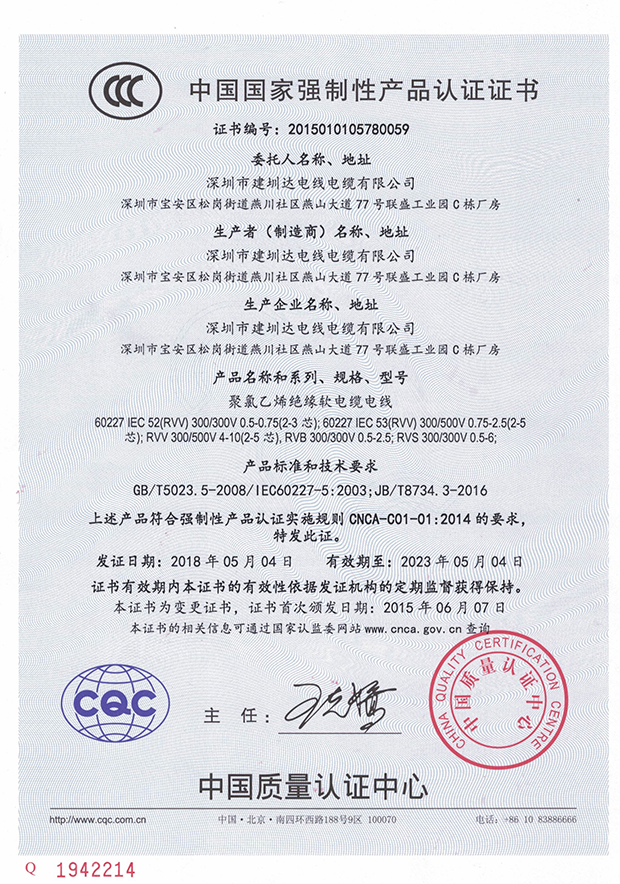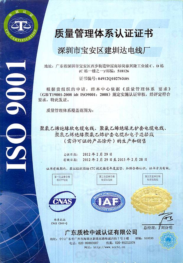 建圳達(dá)電纜立足于中國(guó)深圳,擁有技術(shù)精湛的隊(duì)伍、現(xiàn)代化生產(chǎn)設(shè)備、精密的檢測(cè)儀器,從原材料、生產(chǎn)、成品嚴(yán)格按照國(guó)家標(biāo)準(zhǔn)檢測(cè),通過(guò)多個(gè)認(rèn)證。