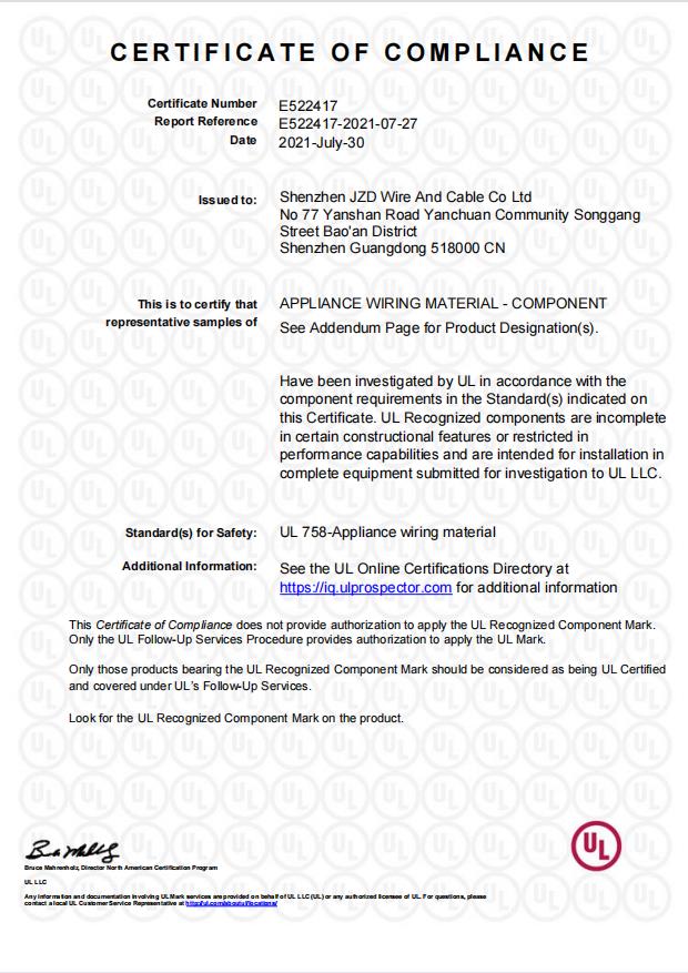 建圳達(dá)THHN美標(biāo)UL尼龍電纜證書(shū)